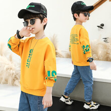 哈卡仑童装男童T恤长袖春秋装2021新款儿童打底衫中大童男孩圆领卫衣春秋款韩版宽松宝宝儿童洋气上衣潮 黄色 160码(适合身高145cm-155cm)