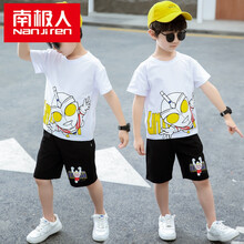 南极人儿童儿童奥特曼服装夏天穿4短袖套装5到6至8岁小男孩男童T恤7短裤一套 白色套装 110码【建议身高95-105厘米】