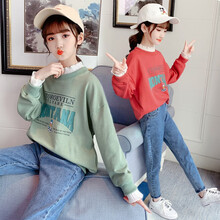 贝卡趣童装女童t恤长袖春秋装2021新款儿童打底衫中大童女孩卫衣韩版宽松宝宝儿童洋气上衣3-15岁大 卫衣-绿色 140码(适合身高125cm-135cm)
