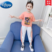 迪士尼童装 女童夏装套装童装儿童套装新款中大童短袖T恤裤子两件套小女孩运动休闲衣服3-12岁潮 粉红色 皇冠套装 110码建议1米