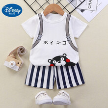 迪士尼小孩子穿的儿童短袖套装夏季纯棉T恤女童服装韩版宝宝新款衣服男童套装童装 短袖套装男款背带 100cm