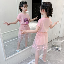 女童连衣裙夏装儿童T恤公主裙新款韩版中大童短袖假两件网纱裙宝宝裙子10小女孩衣服3-12岁 粉红色 150