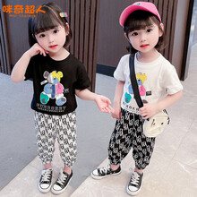 咪奇超人童装女童套装夏装儿童套装幼童小童1-7岁女宝宝休闲短袖T恤裤子薄款运动套装小女孩夏季衣服 黑色 110码建议身高95-105cm