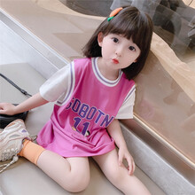 迪士尼官方同款 儿童假两件篮球服女童连衣裙裙夏新款女宝宝3中长款t恤裙运动球服 紫色 90cm