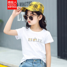 小孩穿的南极人儿童圆领短袖t恤夏季新款棉短袖女童T恤夏天儿童宽松洋气中大童半袖体恤童装潮特价捡漏 三只猫白 160cm