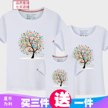 嘉倍儿数字幸福树亲子装夏一家三四口全家装棉质短袖T恤大码男上衣母子女集体装幼儿园班服旅游卡通 白色 童款150