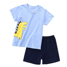 顶瓜瓜童装儿童短袖T恤套装男女童宝宝睡衣家居服套装夏 纯棉A类 蓝色恐龙 120码(建议身高100-110)