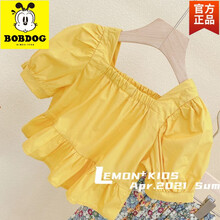 【商场同款】巴布豆0-10岁小孩夏天穿的女童夏装套装新款儿童夏季防蚊裤女宝宝时髦T恤短袖两件套潮 【黄色】露背上衣 140