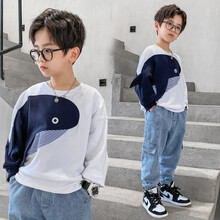 哈卡仑童装男童t恤长袖2021春秋装新款儿童打底衫中大童男孩圆领卫衣韩版宽松宝宝儿童上衣3-15岁潮 1582卡通卫衣 150码(适合身高135cm-145cm)