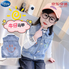 迪士尼(Disney) 女童牛仔马甲2021春秋装新款1-9岁中小童宝宝坎肩韩版百搭背心外穿马夹外套 浅蓝色 140