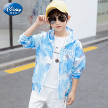 迪士尼新品男童防晒衣春夏款男孩子连帽轻薄空调服外套儿童防晒服皮肤衣小孩子夏天穿的防晒衣凉快 湖蓝色 150