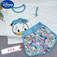 迪士尼 Disney儿童短袖T恤夏季薄款小宝宝家居服女童可爱卡通图案纯棉睡衣套装新品 蓝色鸭子 100码