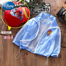 【炎夏必备】迪士尼童装儿童防晒衣夏季男童高档冰丝轻薄透气皮肤衣新款外套空调服中小童宝宝防紫外线防晒服 官方旗䚀店-浅蓝色 官方旗䚀店-100