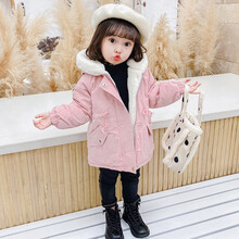 伊人树童装女童外套秋冬加绒加厚派克服新款韩版网红1-3岁半女宝宝冬装4中小童洋气衣服 粉红色 120