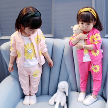 童装女童套装春秋装宝宝衣服儿童长袖外套休闲裤子卫衣三件套0-5岁小女孩衣服 粉色 100码(建议身高90cm左右)