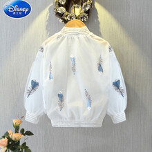 迪士尼夏季儿童防晒衣轻薄透气女童2021新款蕾丝刺绣外套宝宝上衣防晒衫 羽毛防晒衣白色 140cm