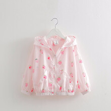 拾贝壳宝宝连帽外套 春秋装新款女童童装儿童长袖水果防晒服 粉色 90