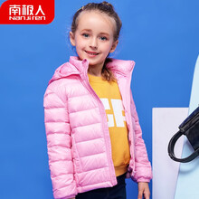 南极人童装儿童男童女童羽绒服冬装2020年新款连帽服短中小童秋冬外套宝宝内胆轻薄款90白鸭绒小孩衣服 粉色可拆帽 130码建议身高120CM左右