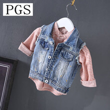 儿童牛仔马甲外套男童春秋款宝宝女童牛仔外套坎肩女小马甲背心 90码建议身高70-80厘米