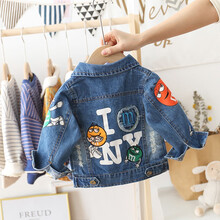 圆圆米米童装男童牛仔外套2春秋款宝宝洋气帅儿童小孩牛仔衣韩版潮流夹克加绒棉服 MM豆牛仔外套蓝色 90码适合80-85cm
