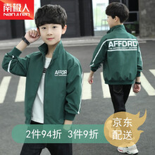 南极人品牌童装男童春装外套2021新款中大童棒球服春秋男孩休闲运动夹克洋气上衣儿童潮流帅气衣服 绿色 120