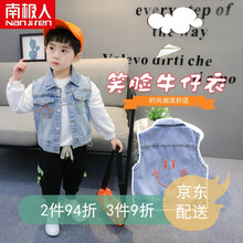 南极人品牌特卖 童装男童牛仔马甲春装2021新款儿童韩版背心3小童男宝宝浅色马夹外套潮5岁 浅蓝色 110