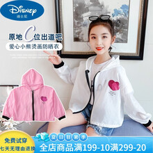 迪士尼儿童防晒衣女童皮肤衣2021夏季新款6-13岁中大童防紫外线外套女孩洋气长袖连帽上衣拼色空调服 白色 110