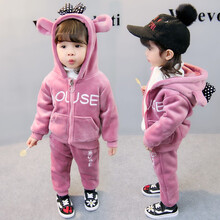 悦爱宝女童套装童装女秋冬装儿童金丝绒卫衣套装1岁女宝宝外套休闲裤男童套装2020年秋新款3岁小孩衣服 玫红色 110码适合100-110cm