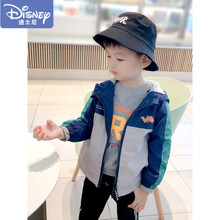 迪士尼自l营轻奢品男童外套春秋季童装新款儿童加绒冲锋衣帅气宝宝薄绒保暖风衣洋气 灰蓝色 100cm