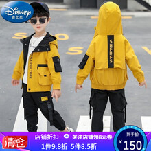 迪士尼男童秋装套装2021年新款春秋季儿童洋气秋款帅气小男孩运动衣服潮工装裤外套两件套2-14岁 黄色 官方旗舰:160