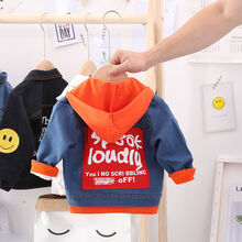 童趣鸭 男童牛仔外套春秋韩版2小童洋气儿童夹克女童春装宝宝衣服男1-4岁 桔红色 字母拼接牛仔外套 110