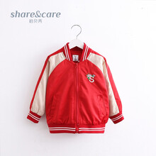 拾贝壳宝宝棒球服 春装新款女童童装儿童绣花外套SWT0217 红色 100