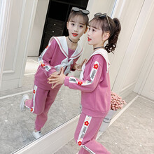 童唛屋童装女童套装中大儿童春秋款运动休闲外套套头卫衣长裤子2021韩版小女孩宝宝学生洋气时尚两件套潮 粉色 140码(建议身高135cm左右)
