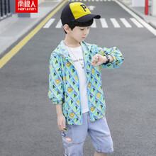 南极人儿童防晒衣服 男童年新款帅气轻薄透气儿童薄款冰丝防晒服外套潮小孩子夏天穿的轻薄空调服 浅绿色21129几何防晒衣 110