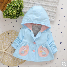 水花童 女童春秋风衣外套2021春款1-3-5岁女宝宝网红洋气上衣儿童韩版春装夹克 小猪夹克外套 蓝色 120码(建议4-5岁110-115CM左右)