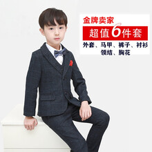 儿童西装套装男童花童礼服钢琴演出服中大童韩版小孩西服外套男孩小西装宝宝走秀英伦风 藏青色6件套 130码(建议体重50-58)