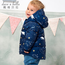 戴维贝拉童装儿童羽绒服男童新款冬装小童宝宝洋气保暖连帽外套潮 藏青底印花 110cm(建议身高100-110cm)