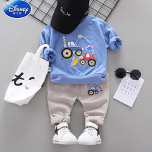 迪士尼男童套装宝宝春装0婴幼儿童2长袖外套装小男孩卫衣服1到3岁两件套 蓝色铲车两件套 80码【建议身高75厘米以下】