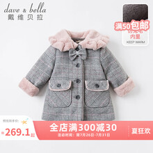 davebella戴维贝拉童装加绒保暖女童外套儿童大衣女宝宝冬装新款时髦格子外衣 灰白格 130cm(建议身高120-130cm)