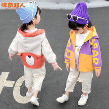 咪奇超人童装女童外套春装儿童外套幼童小童1-7岁女宝宝韩版休闲连帽风衣外套小女孩春秋款衣服 桔色 110码建议身高95-105cm