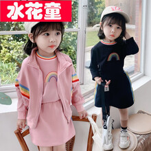 水花童 宝宝春秋装套装裙女婴儿童装女小童衣服秋季洋气女童小女孩三件套潮 粉外套加裙子+T恤 80
