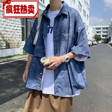 高街国潮亿万少年小尼力街头嘻哈潮流店扎染短袖衬衫男韩版潮流ins港风日系外套夏季薄款五分半袖衬衣服 蓝色【穿搭博主1】 L 【关注店铺优先发货...