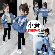 溜溜蛙童装女童外套儿童牛仔风衣夹克春秋季宝宝小孩衣服2021年新款中大童韩版时尚休闲洋气立体花朵上衣 蓝色 150cm