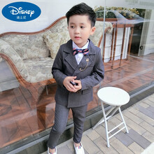 Disney迪士尼品牌小童西装套装男童儿童小西装2021新款中小宝宝花童礼服主持人走秀 灰色外套长裤衬衫配领结胸针 80cm