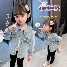 悦爱宝童装女宝宝衣服牛仔外套春装简约舒适纯色牛仔外套2021新品婴童上衣女童春装小童 蓝色 90码 身高75-85cm 1-2岁