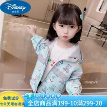 迪士尼女童外套春秋2021新款女宝宝冲锋衣洋气小熊印花夹克中小儿童1岁3幼童拼接连帽外套5百搭开衫4 浅蓝色 100