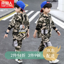 南极人童装男童迷彩套装秋装2021新款儿童春秋韩版中大童迷彩外套长裤男孩衣服秋季吃鸡两件套3-12岁 灰色【高品质】 150
