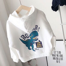 飞之健起新款男连帽卫衣春秋款秋装宝宝小孩衣服恐龙长袖上衣外套 白色恐龙 90