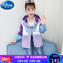 迪士尼女童外套春装2021新款洋气儿童冲锋衣春秋网红大童装女孩韩版风衣拼色外套小学生秋天衣服 浅紫色 110