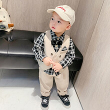 儿童装男童春装套装上衣户外休闲运动外套2021新款一周岁男孩衣服帅气生日男宝宝三件套春秋潮 CT-310402卡其色预售2月26号发货 90cm